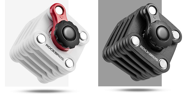Add some flair to your ride with a mini-cube foldable lock, with seatpost mounting hardware included. Clever, patented design uses a retractable 4-digit password system. Lock body made of zinc alloy and ABS. Made by Rockbros.