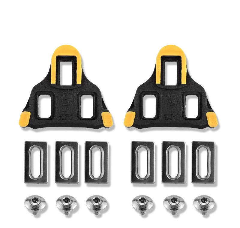 Package includes one pair of pedals, one pair of cleats, locking plates, and locking screws.  Made by Rockbros.
