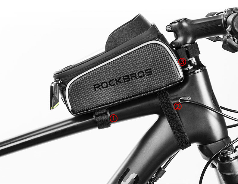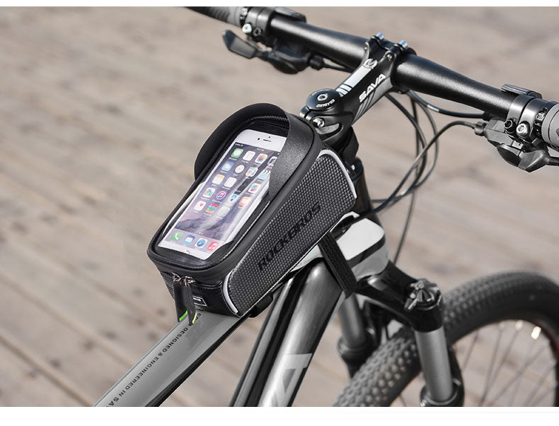 Accommodates phone screen size up to 6 inches. Made by Rockbros.