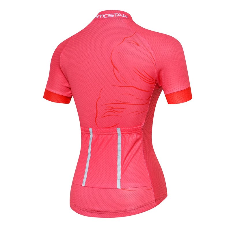 Professional quality cycling jersey featuring full front zipper, three roomy rear pockets and reflective lining in back.  Slightly fitted and breathable and made of quick-dry 100% polyester.  Perfect for warm weather commutes, or as a core-warming mid-layer for those cooler mornings.