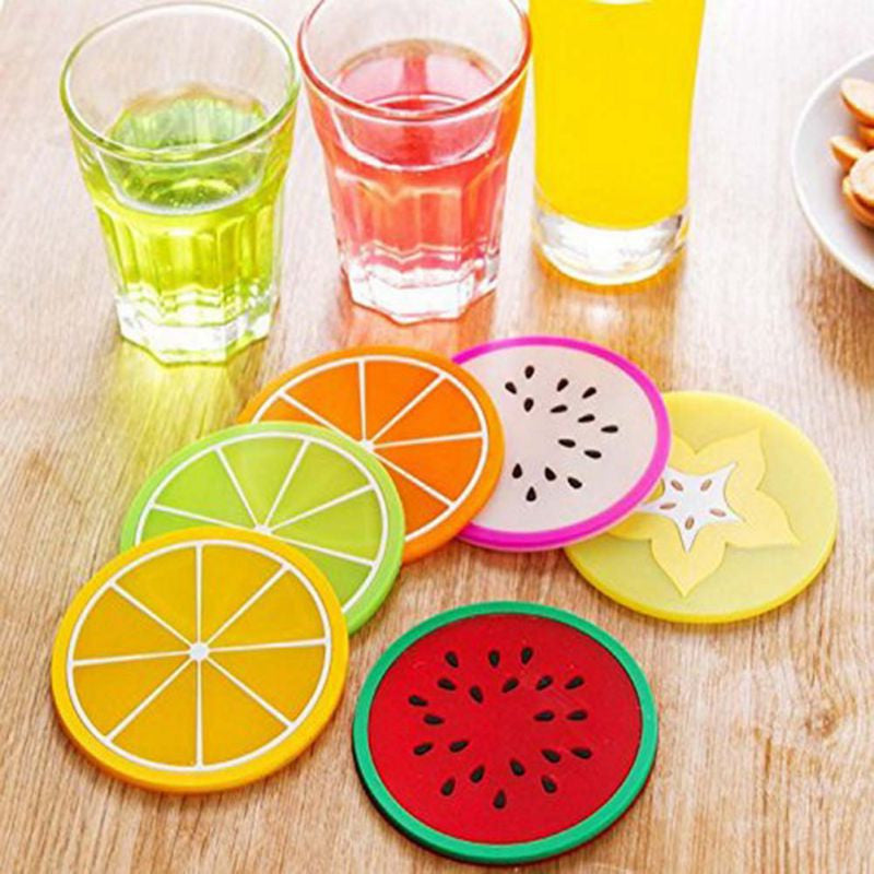6Pcs/Set Round Fruit Tablemat Durable Non-slip Mats Dining Table To Coffee Cup Multifunction Heat Silicone pads