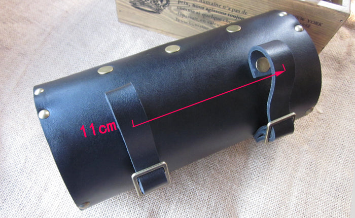 Give your bike a retro look with this high quality leather saddle bag.  Mount either on your handlebars or under your saddle with leather straps.  Constructed of 100% cowhide leather over 3mm in thickness.  Handmade and available in brown or black.